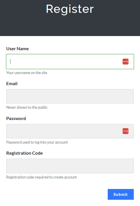 Registration requires only four components, as shown below. Your email will not be shared. Your username WILL be publicly visible and profanity or inappropriate language will not be tolerated during registration or at any time during the event.